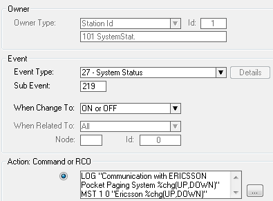 LOG "Communication with ERICSSON Pocket Paging System %chg(UP,DOWN)" MST 1 0 "Ericsson %chg(UP,DOWN)"