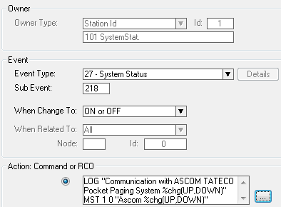 LOG "Communication with ASCOM TATECO Pocket Paging System %chg(UP,DOWN)" MST 1 0 "Ascom %chg(UP,DOWN)"