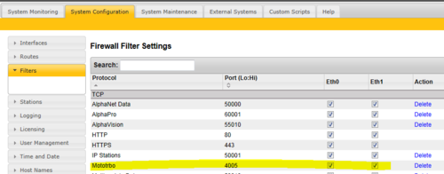 - Port = 4005. This is the TCP/IP port used between AlphaCom and the IPARIO. Note: This port must be defined and opened in the Filters settings in AlphaWeb.