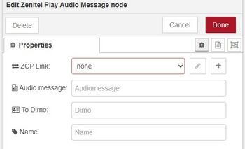 - ZCP Link: The IP address and port number of the ZCP that the Play audio message node should connect to (e.g. 10.9.8.7:8086)