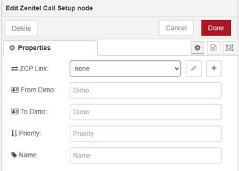 - ZCP Link: The IP address and port number of the ZCP that the Call setup node should connect to (e.g. 10.9.8.7:8086)