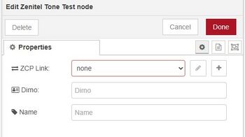 | Tone test node properties window |