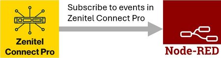 Event nodes operate based on subscriptions. When an event node subscribes to data in Zenitel Connect Pro, any change to that data triggers a WAMP event, which is then sent to Node‑RED. The data sent to Node‑RED is unfiltered. For example, if you subscribe to GPO events, all GPO events will be delivered.