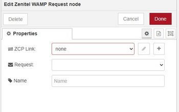 The WAMP request node is a generic node for requests. Unlike the other request nodes it only has a drop down to pick between the different available WAMP URI's, except the GPI and GPO. All filtering needs to be done in other nodes.