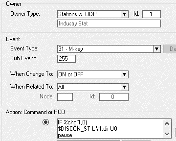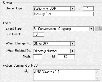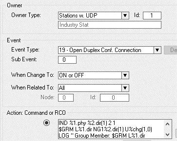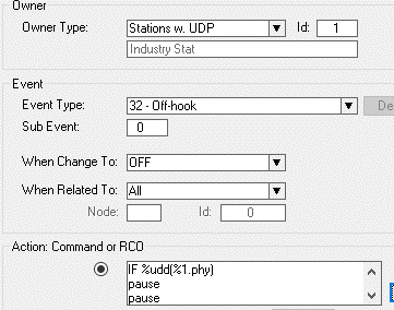 IF %chg(1,0) $DISCON_ST L%1.dir U0 pause pause pause $DD L%1.dir L85 LOG "%1.dir: Group Call 85 from PTT button" stop ENDIF $DISCON_ST L%1.dir U0 IF %udd(%1.phy) pause $ODC L%1.dir L830%udd(%1.phy) U1 U4 LOG "%1.dir: Reconnect Conference after PTT: 830%udd(%1.phy)" ENDIF ENDIF