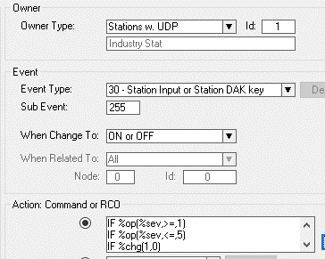 IF %op(%sev,>=,1) IF %op(%sev,<=,5) IF %chg(1,0) IF %op(%udd(%1.phy),=,%sev) $ODC L%1.dir L8300 WUDD %1.phy 0 LOG "%1.dir: Conference OFF" stop ENDIF $ODC L%1.dir L8300 $ODC L%1.dir L830%sev U1 U4 WUDD %1.phy %sev LOG "%1.dir: Conference 830%sev" ENDIF ENDIF ENDIF IF %op(%sev,=,6) IF %chg(1,0) $DISCON_ST L%1.dir U0 pause pause pause $DD L%1.dir L85 LOG "%1.dir: Group Call 85" stop ENDIF $DISCON_ST L%1.dir U0 IF %udd(%1.phy) pause $ODC L%1.dir L830%udd(%1.phy) U1 U4 LOG "%1.dir: Reconnect Conference 830%udd(%1.phy)" ENDIF ENDIF