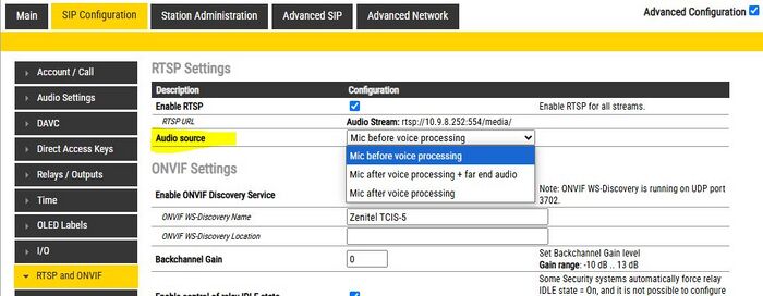 - RTP Stream Always Enabled: Audio stream is permanently transmitted (default)
