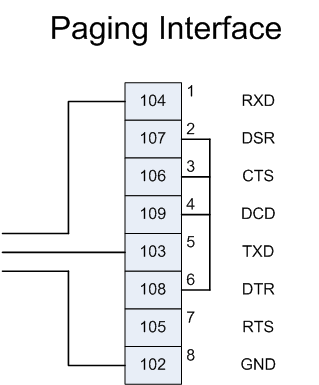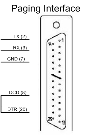 Connect the pocket paging encoder to an RS232 on the Data Connection Board (port 5 has been prepared).