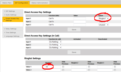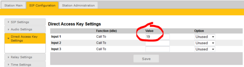 Log on to the web interface of the substation, and navigate to SIP Configuration > Direct Access Key Settings.