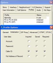 - Click the Properties tab and define a new profile (AlphaSip) with profile type SIP proxy