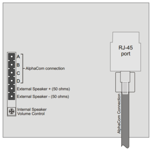 For details on connection at the AlphaCom server side, see ASLT - AlphaCom Subscriber Line Board