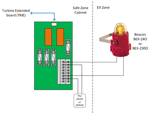 A single TFIX with external signal device in the EX zone, where all the controlling equipment is located in the safe zone, either in the server room, or in a closed cabinet in a more convenient placement out in the field.