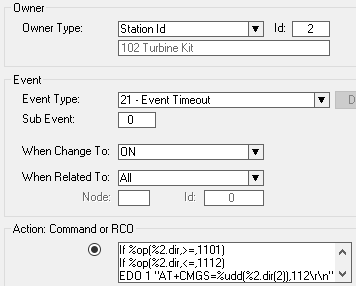 IF %op(%2.dir,>=,1101) IF %op(%2.dir,<=,1112) EDO 1 "AT+CMGS=%udd(%2.dir(2)),112\r\n" EDO 1 "8202%2.dir(2)014669726520416C61726D\x1A" LOG "AT+CMGS=%udd(%2.dir(2)),112\r\n" LOG "8202%2.dir(2)014669726520416C61726D\x1A" IF %op(%op(%2.dir(2),+,1),>,12) LOG "Finished sending FIRE ALARM to all 12 radios" STOP ENDIF LOG "Sending to next radio #%udd(%op(%2.dir(2),+,1)) in 2.5 seconds" $ST L%1.dir W25 L%op(%2.dir,+,1) ENDIF ENDIF IF %op(%2.dir,>=,1201) IF %op(%2.dir,<=,1212) EDO 1 "AT+CMGS=%udd(%2.dir(2)),120\r\n" EDO 1 "8202%2.dir(2)0142696C676520416C61726D\x1A" LOG "AT+CMGS=%udd(%2.dir(2)),120\r\n" LOG "8202%2.dir(2)0142696C676520416C61726D\x1A" IF %op(%op(%2.dir(2),+,1),>,12) LOG "Finished sending BILGE ALARM to all 12 radios" STOP ENDIF LOG "Sending to next radio #%udd(%op(%2.dir(2),+,1)) in 2.5 seconds" $ST L%1.dir W25 L%op(%2.dir,+,1) ENDIF ENDIF IF %op(%2.dir,>=,1301) IF %op(%2.dir,<=,1312) EDO 1 "AT+CMGS=%udd(%2.dir(2)),128\r\n" EDO 1 "8202%2.dir(2)01537461742D5820416C61726D\x1A" LOG "AT+CMGS=%udd(%2.dir(2)),128\r\n" LOG "8202%2.dir(2)01537461742D5820416C61726D\x1A" IF %op(%op(%2.dir(2),+,1),>,12) LOG "Finished sending STAT-X ALARM to all 12 radios" STOP ENDIF LOG "Sending to next radio #%udd(%op(%2.dir(2),+,1)) in 2.5 seconds" $ST L%1.dir W25 L%op(%2.dir,+,1) ENDIF ENDIF IF %op(%2.dir,>=,1401) IF %op(%2.dir,<=,1412) EDO 1 "AT+CMGS=%udd(%2.dir(2)),64\r\n" EDO 1 "8202%2.dir(2)0149434D53\x1A" LOG "AT+CMGS=%udd(%2.dir(2)),64\r\n" LOG "8202%2.dir(2)0149434D53\x1A" IF %op(%op(%2.dir(2),+,1),>,12) LOG "Finished sending ICMS to all 12 radios" STOP ENDIF LOG "Sending to next radio #%udd(%op(%2.dir(2),+,1)) in 2.5 seconds" $ST L%1.dir W25 L%op(%2.dir,+,1) ENDIF ENDIF