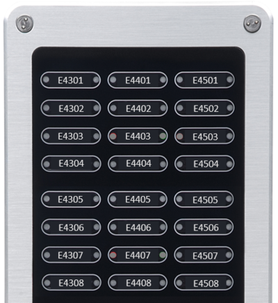 The application is based on using the IP Flush Master with a DAK-48 module. One DAK panel supports up to 16 pairs of intercoms. If more pairs are needed (max. 20 pairs), a second DAK-48 panel must be added. Function keys on the DAK48 panel will be as follows:
