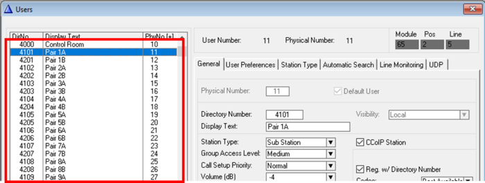 The stations in the pairs must have directory numbers 41xx (Station A) and 42xx (Station B) according to the rules above (xx = 01 - 20).
