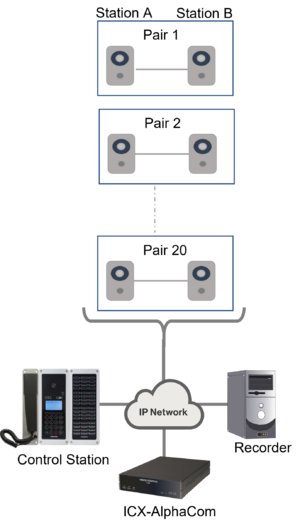 This article describes how the ICX-AlphaCom system can be configured to control call setup between pairs of stations, e.g. used for visitor intercoms i prison, interrogation rooms etc. Up to 20 pairs of intercoms are supported.