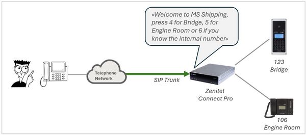 - On an incoming telephone call, play a welcome message with menu options.