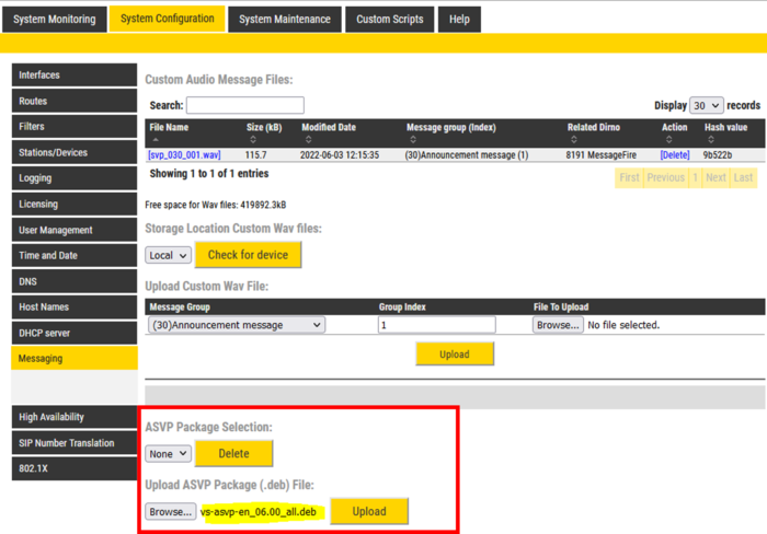Voice Language Package ASVP - installation