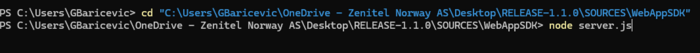 Once steps above have been completed, navigate to SDK folder via powershell and run node server.js command.