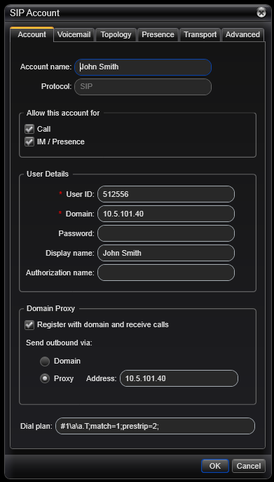 - Display Name: This is the display text shown in the intercom display when receiving calls from the X-Lite